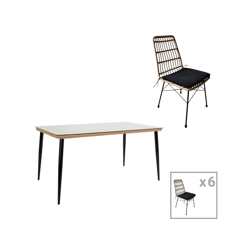 To σετ περιλαμβάνει έξι καρέκλες και ένα τραπέζι.