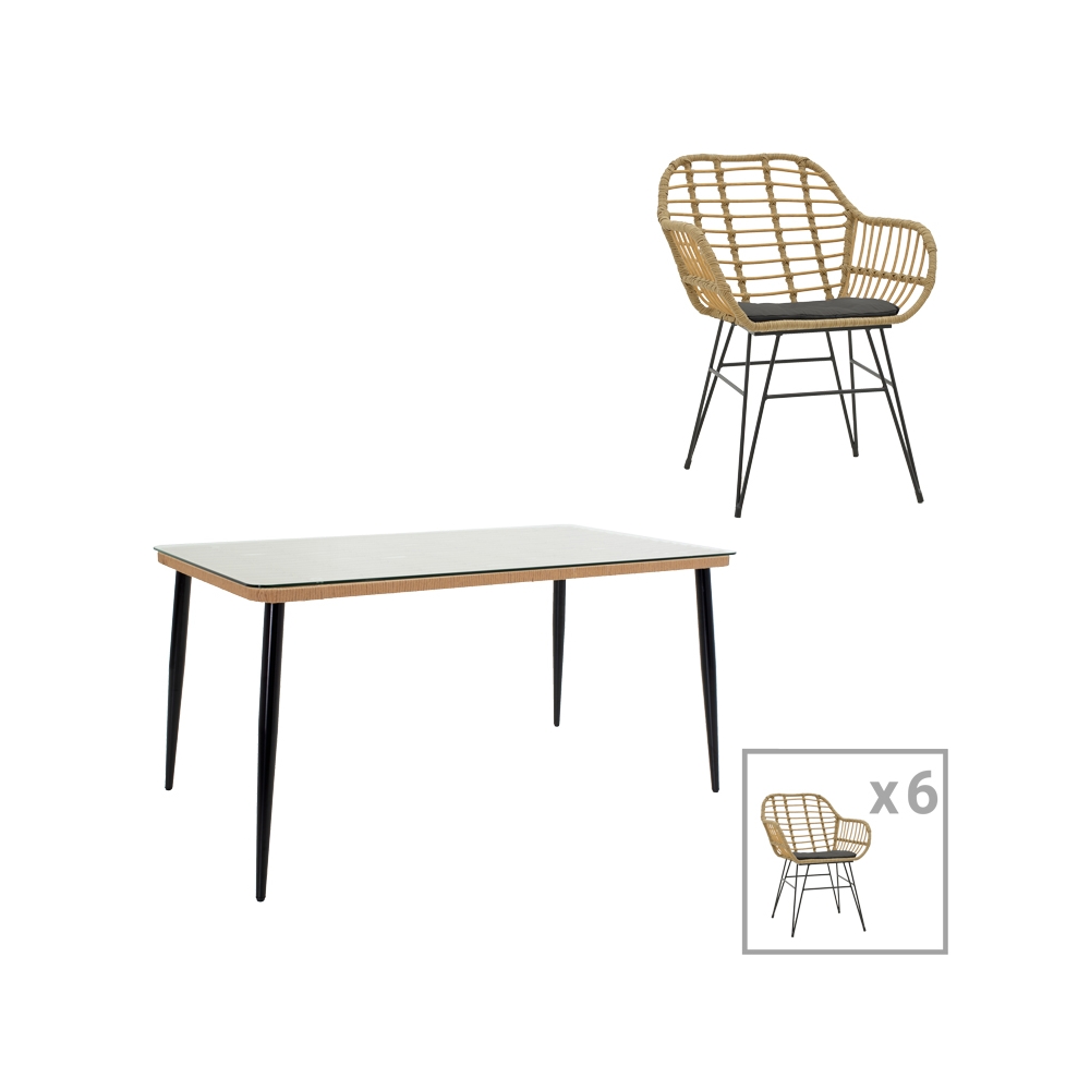 To σετ περιλαμβάνει έξι πολυθρόνες και ένα τραπέζι.