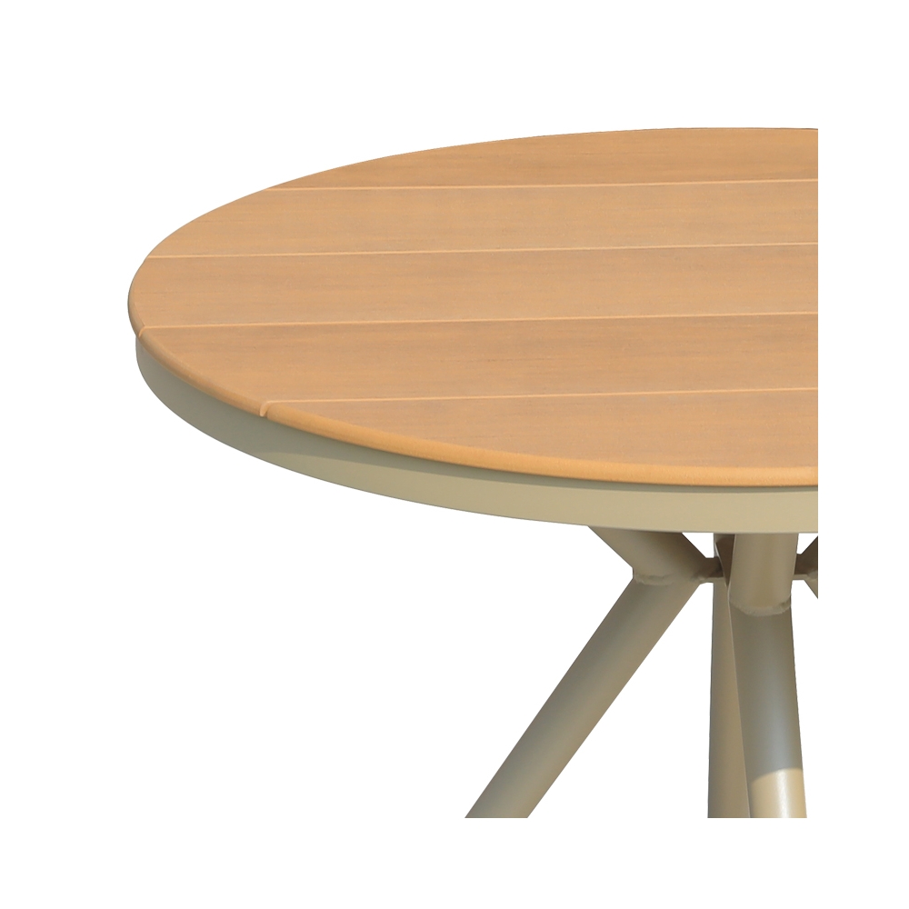 Πληροφορίες υλικών: •Plywood: Το plywood είναι ένα σύνθετο υλικό που μοιάζει με ξύλο, κατασκευασμένο από ανακυκλωμένα πλαστικά. Χρησιμοποιείται συνήθως για την κατασκευή εξωτερικών επίπλων, όπως τραπέζια, καρέκλες, ξαπλώστρες και παγκάκια. Είναι εξαιρετικά ανθεκτικό στις καιρικές συνθήκες. •Αλουμίνιο: Το υλικό "ALU" αναφέρεται στο αργίλιο (Aluminum), το οποίο είναι το τρίτο πιο κοινό στοιχείο στη γη και το πρώτο πιο κοινό μέταλλο. Το αλουμίνιο δημιουργεί ένα προστατευτικό οξειδωτικό στρώμα όταν έρχεται σε επαφή με τον αέρα, προστατεύοντας από τη διάβρωση, ενώ παράλληλα είναι πλήρως ανακυκλώσιμο χωρίς να χάσει τις ιδιότητές του, κάνοντάς το ένα πολύ βιώσιμο υλικό.