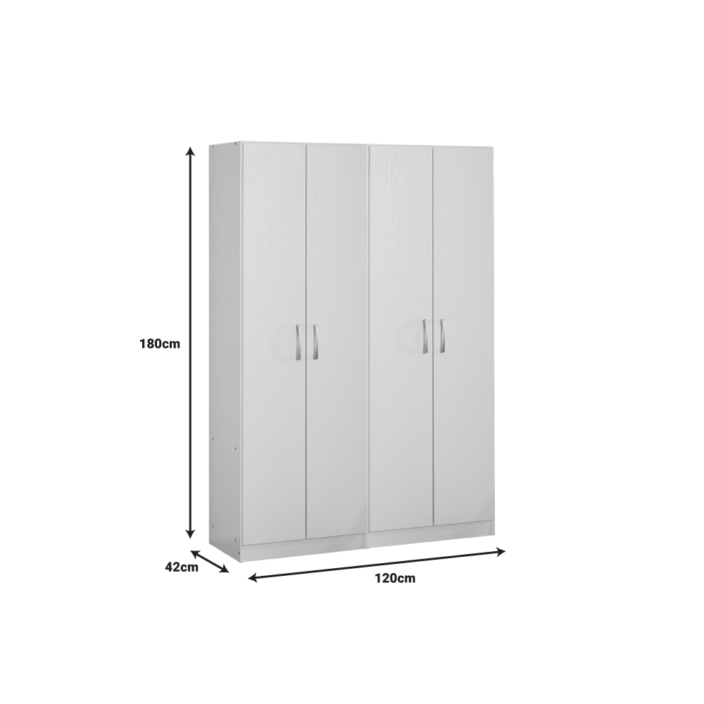 - Περιλαμβάνει τέσσερις μεγάλες πόρτες, εσωτερικά φέρει ράγα για κρεμάστρες και κάτω δύο μεγάλα συρτάρια για την αποθήκευση ρούχων και αξεσουάρ.