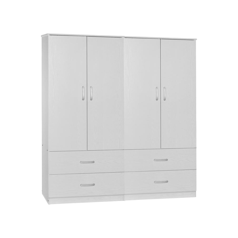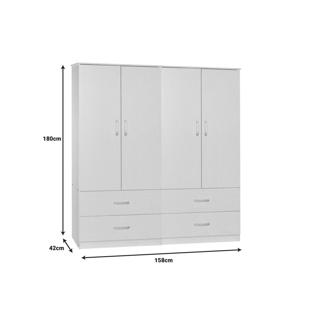 - Περιλαμβάνει τέσσερις μεγάλες πόρτες, εσωτερικά φέρει ράγα για κρεμάστρες και κάτω δύο μεγάλα συρτάρια για την αποθήκευση ρούχων και αξεσουάρ.