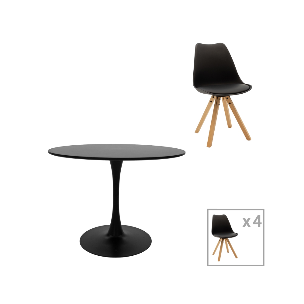 To σετ περιλαμβάνει τέσσερις καρέκλες και ένα τραπέζι.