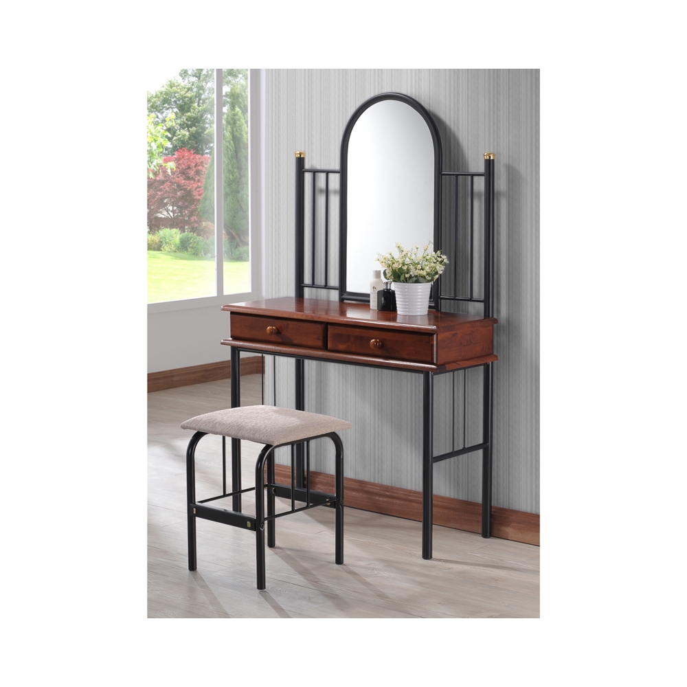 - Η σύνθεση περιλαμβάνει την κονσόλα με δύο συρτάρια, καθρέπτη και ένα σκαμπό.