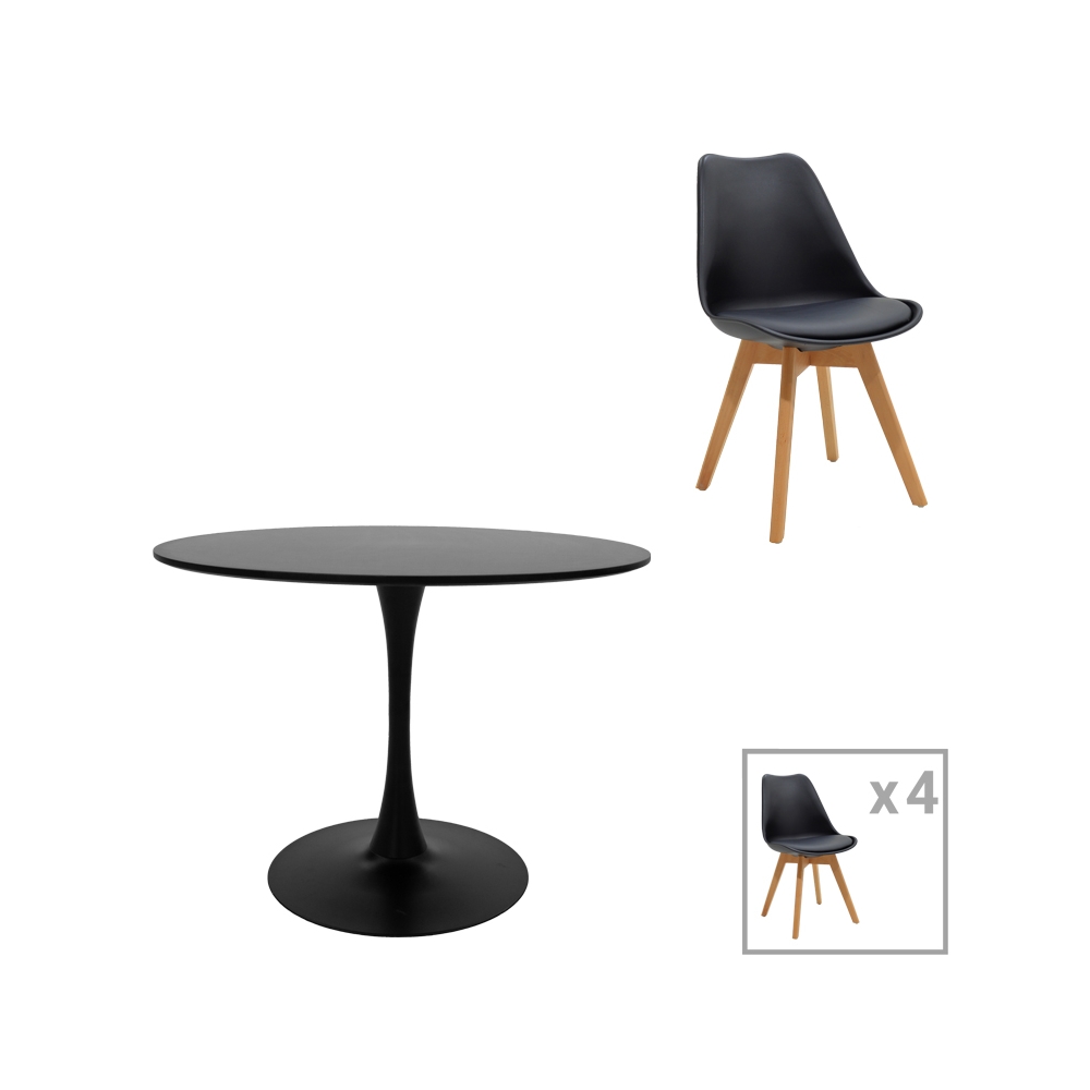 Σετ πέντε τεμαχίων:- Στρογγυλό τραπέζι Balou pakoworld MDF σε μαύρη απόχρωση Φ100x75εκ