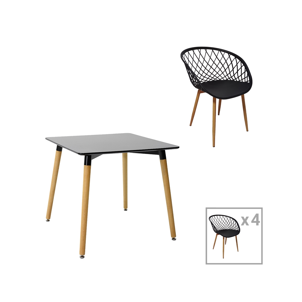-Τραπέζι Natali pakoworld MDF μαύρο-πόδια φυσικό 80x80x76εκ