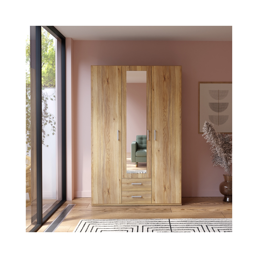 - Περιλαμβάνει τρεις πόρτες, εσωτερικά φέρει ράγες για κρεμάστρες και κάτω δύο συρτάρια για την αποθήκευση ρούχων και αξεσουάρ.