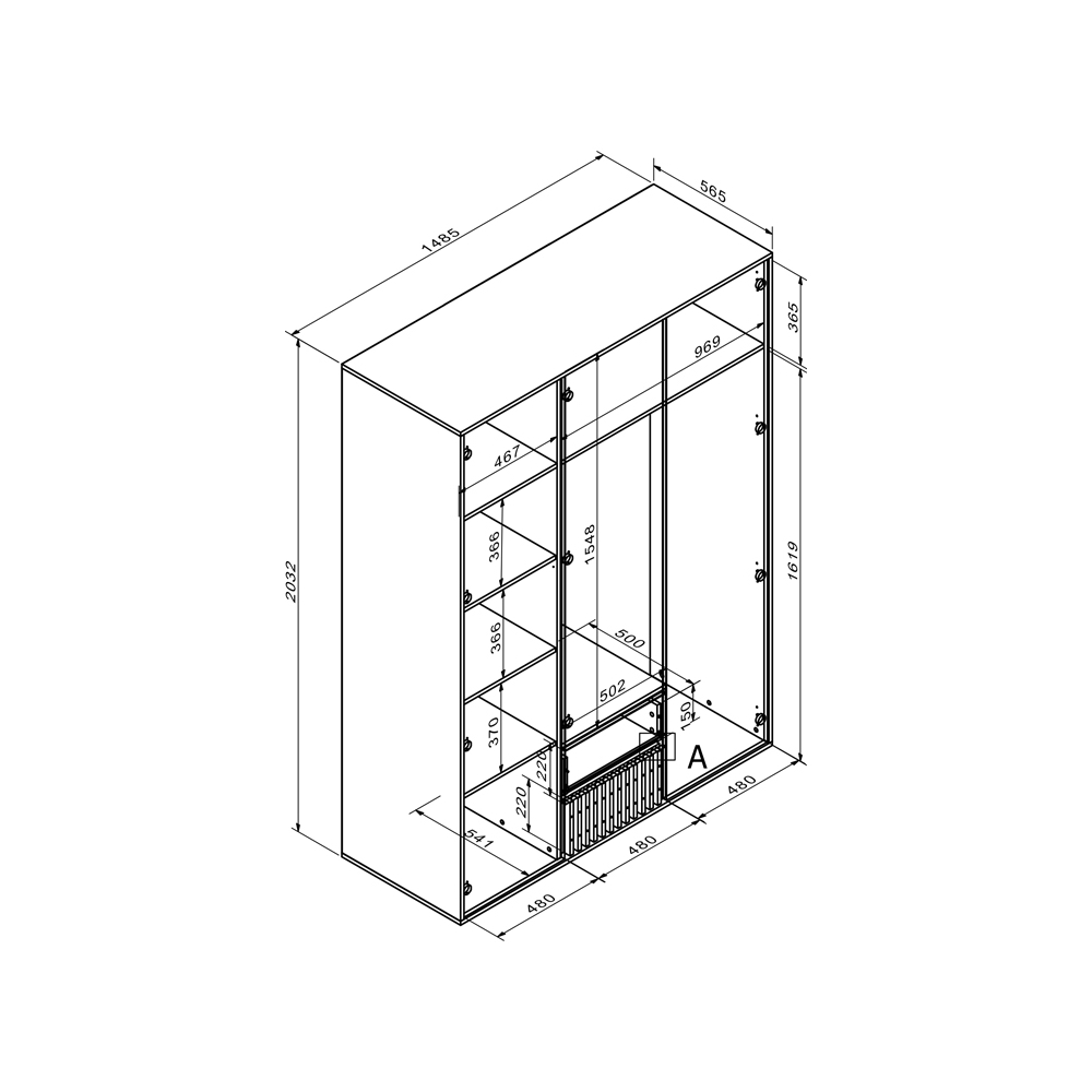 - Περιλαμβάνει δύο συρτάρια και τρία φύλλα με εσωτερικά ράφια για την αποθήκευση ρούχων και αξεσουάρ.