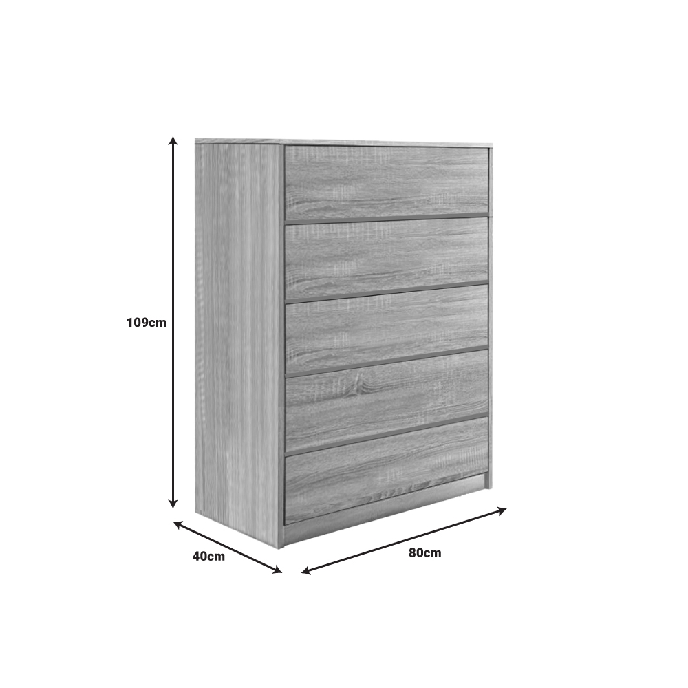 - Φέρει πέντε μεγάλα συρτάρια για την αποθήκευση των αγαπημένων σας ρούχων και αξεσουάρ.
